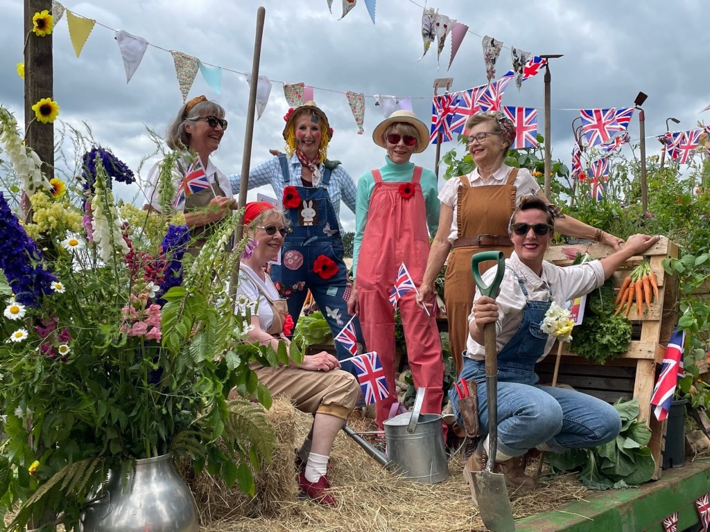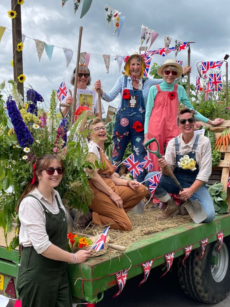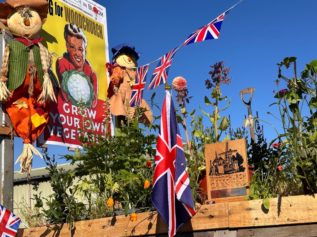 Our float was combined with ‘WoodchurchYard Together’, Woodchurch Cottage Flowers & Woodchurch Market Garden – several of us spent 2 days building it which was great fun – our theme being ‘Dig for Woodchurch’